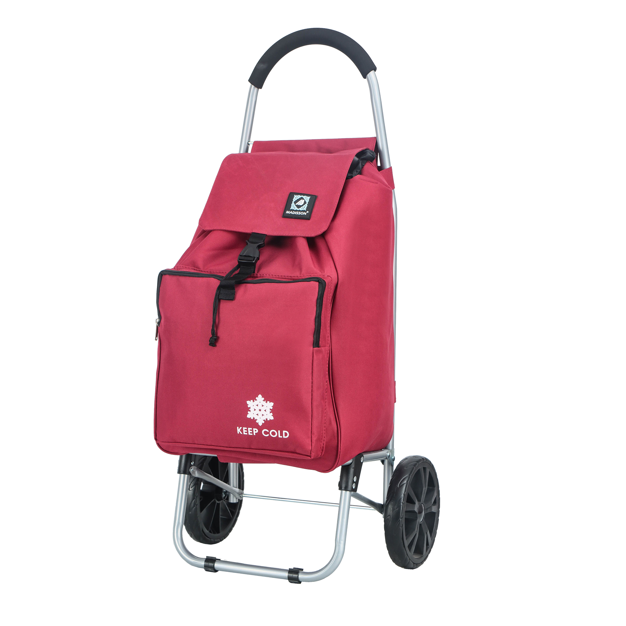 Le chariot de courses pliable de marché à 2 roues avec poche isotherme de marque Madisson est parfait pour faire vos courses au marché ou en magasin. Robuste et pratique il vous facilitera la vie en transportant vos courses et achats sans efforts.